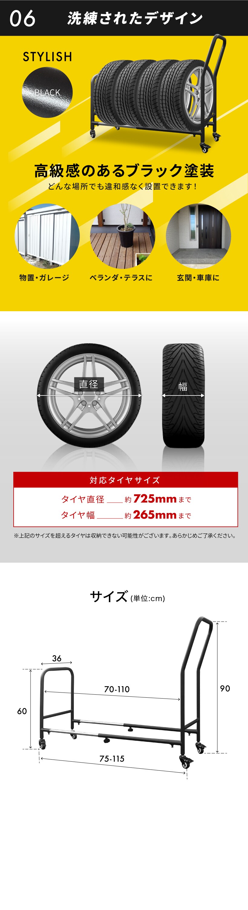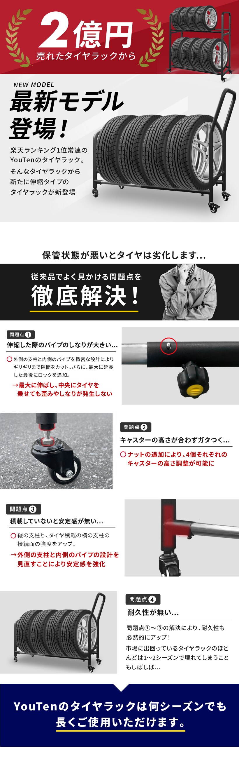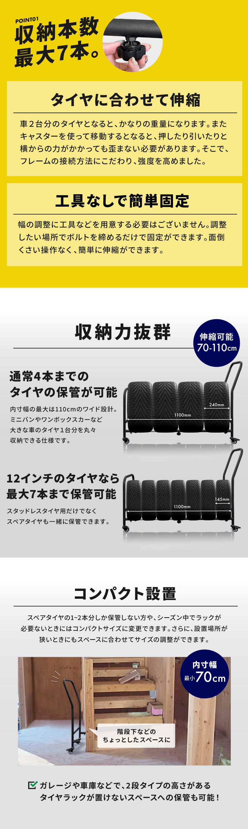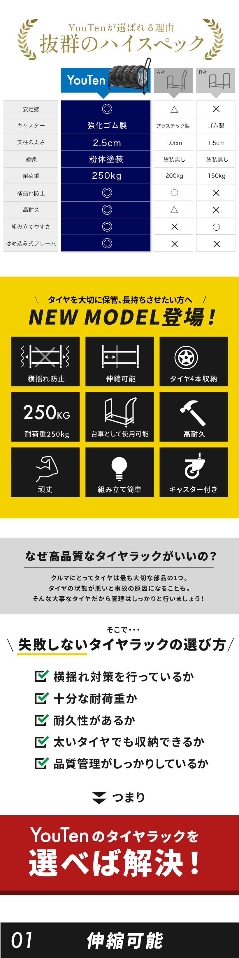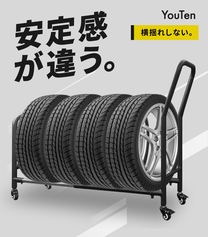 タイヤラック 伸縮式 タイヤラック キャスター付 スリム 縦置き 耐荷重250キロ ロック機能付き 1段式 4本 タイヤ収納ラック 普通車 大型車 RV車 4WD SUV ワイドサイズ 組立簡単 カー用品 スペアタイヤ スタッドレスタイヤ キャスター付