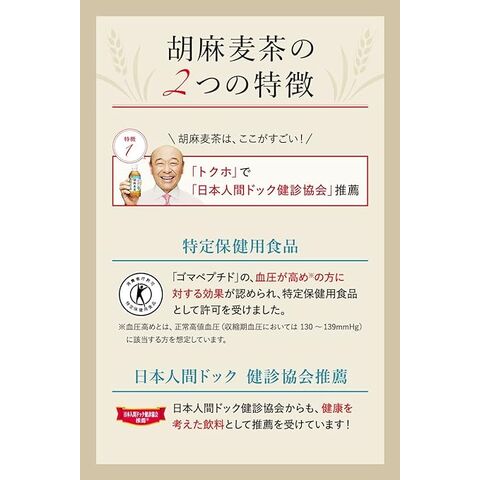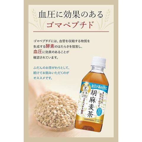 ゴマから生まれた“ゴマペプチド”を含んでおり、血圧が高めの方に適した特定保健用食品のブレンド茶です。血圧が高めの方は、「胡麻麦茶」を毎日継続してお飲みいただくと血圧の低下が見られることが明らかになっています※。