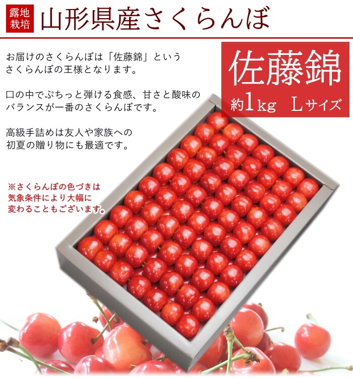 | 名称 | さくらんぼ 佐藤錦 手詰め Lサイズ 約1kg |