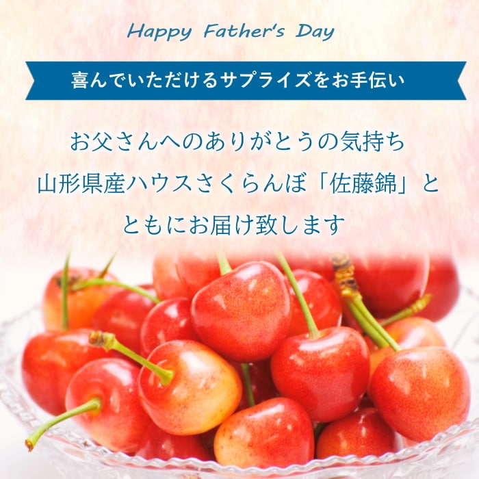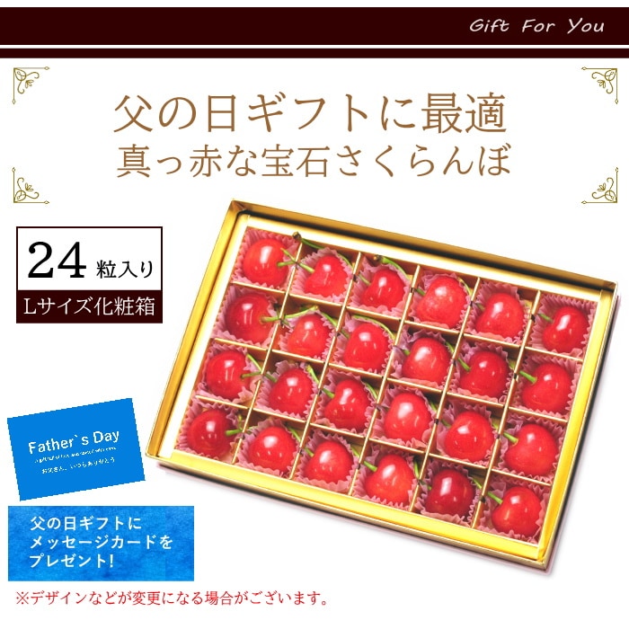 | 商品について | さくらんぼ化粧箱詰め1箱と父の日カードを同梱致します。 ※父の日カードは不要な場合、購入時に選択下さい。 |