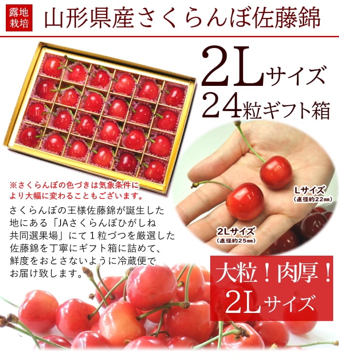 名称 さくらんぼ 佐藤錦 チョコ箱詰め LLサイズ 24粒