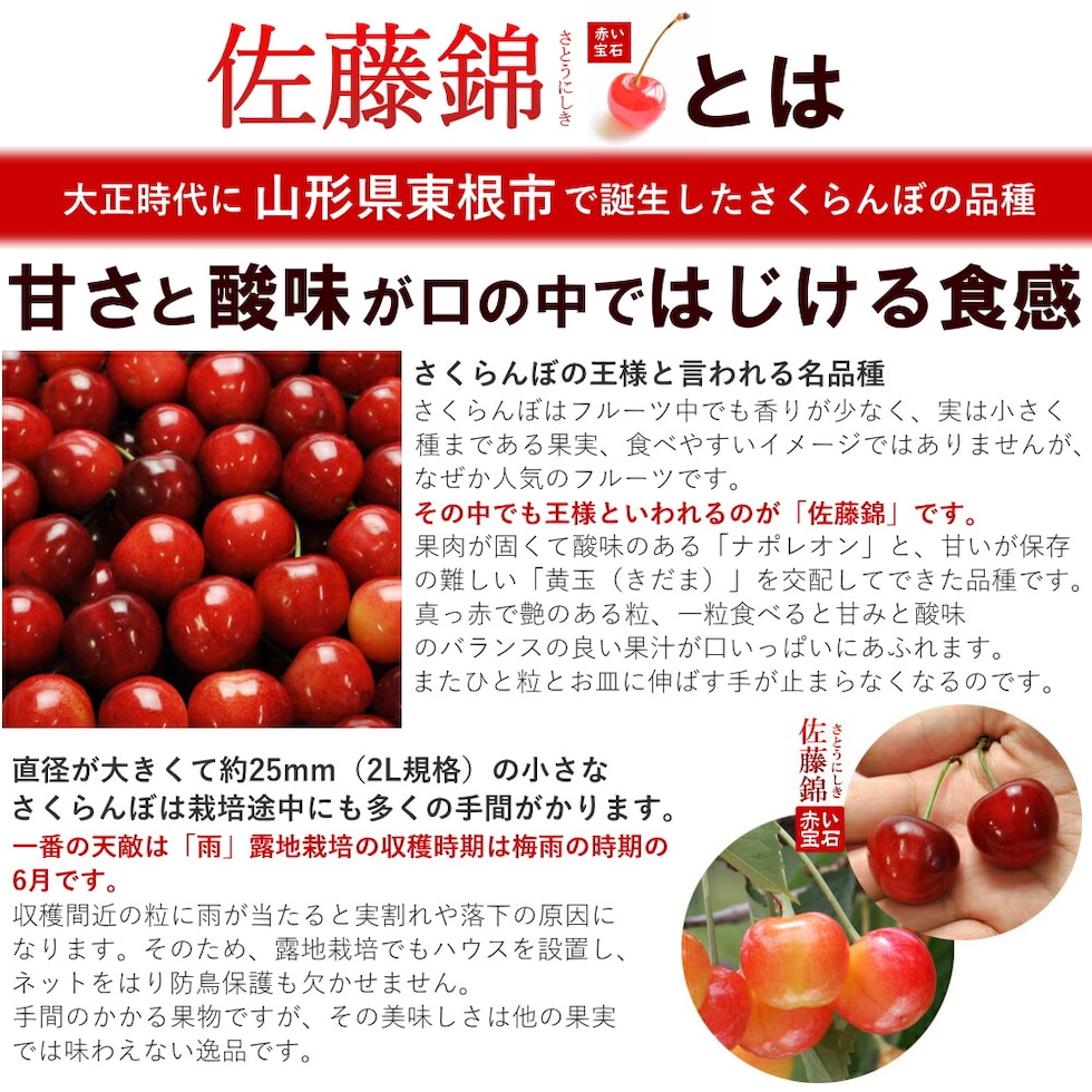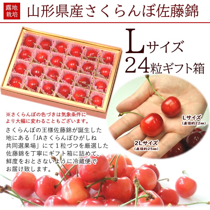 | 名称 | さくらんぼ 佐藤錦 チョコ箱詰め Lサイズ 24粒 |