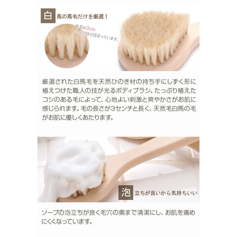 ボディ ブラシ ボディ用 背中 日本製 天然 毛 馬 馬毛 天然素材 お風呂 浴室 お風呂用 浴用 浴用ブラシ お風呂用ブラシ 体用 体洗うブラシ バス用品 お風呂用品