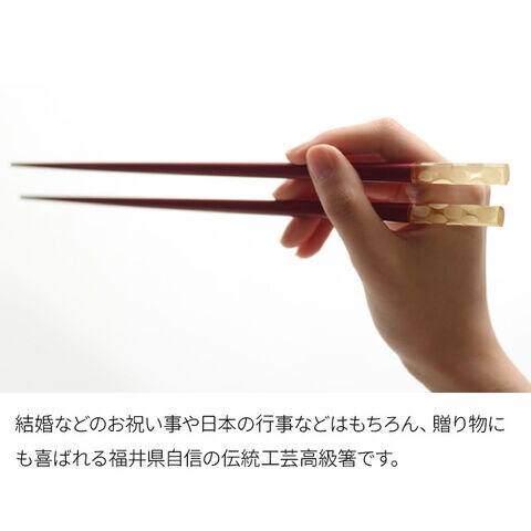 結婚などのお祝い事や日本の行事などはもちろん、贈り物にも喜ばれる箸です。