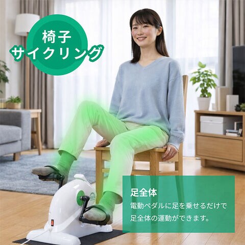 モーターで運動をアシストするので膝や脚の関節に負担がかからず、ご年配の方のリハビリにも使用することができます。
