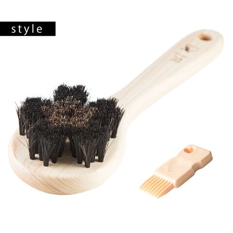 【素材】持ち手:天然木(ヒノキ) 毛:黒馬毛、茶馬毛 ブラシクリーナー:ポリアセタール