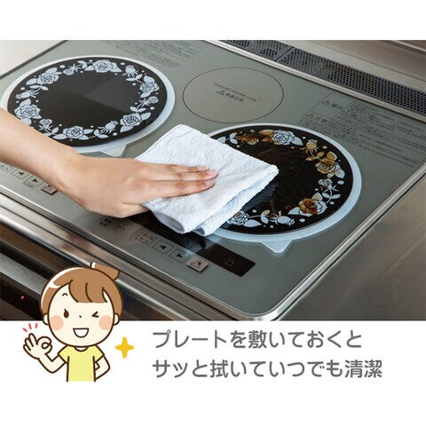 IHコンロ用のガラス製汚れ防止プレートと、ズレ対策に便利なシリコーンゴムのセットです。