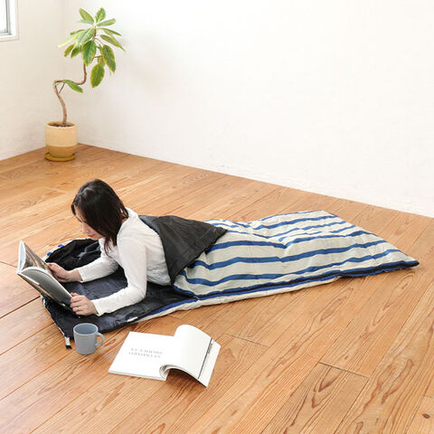 洗えるクッション寝袋 ストライプ QT-537 1978058(寝袋 洗える 洗濯機 車中泊グッズ キャンプ用品 キャンプグッズ コンパクト 軽量 アウトドア用品 シュラフ シェラフ ねぶくろ お昼寝マット 大人 クッション 防災グッズ 防災 収納袋付き)