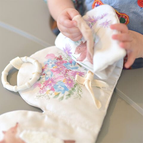 即納 amanoppo あまのっぽ ぬのえほん いつでも花束をそばに(布絵本 赤ちゃん 0歳 出産祝い ハーフバースデー プレゼント 音が鳴る おもちゃ 布 絵本 知育玩具 生後半年 生後6ヶ月 しかけ絵本 女の子 男の子)