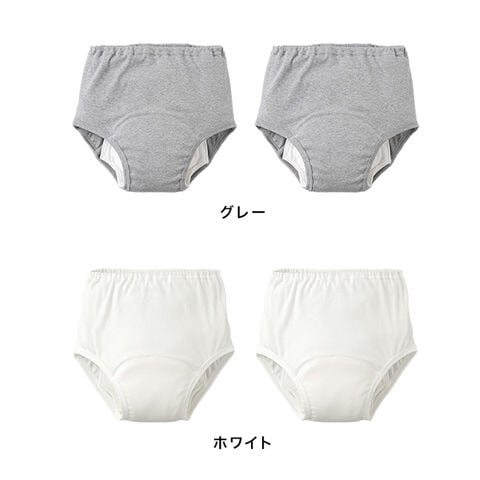 サイズはM~LLの3サイズ、色はベーシックなホワイト・グレー。2枚同色セットで、毎日の洗い替えにも便利。洗濯機で洗えて繰り返し使える、日本製の信頼品質です。