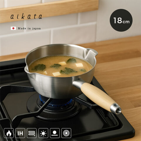 aikata アイカタ 両口ステンレス雪平鍋18cm 280104(雪平鍋 ステンレス IH 片手鍋 ステンレス鍋 18cm 日本製 片手 鍋)