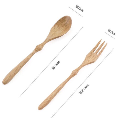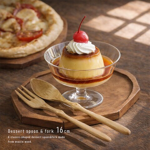 shesay アカシアの木で作った クラシカルなデザートスプーン&デザートフォーク(カトラリーセット デザートスプーン)