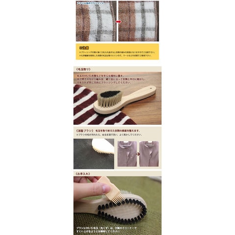 毛玉を取った後、洋服ブラシを使って衣類の繊維をツヤよく整えれば、風合いも長持ちします。