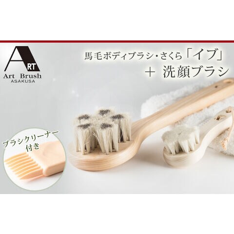 即納 アートブラシ社 馬毛ボディブラシ・さくら イブ+洗顔ブラシセット(浅草アートブラシのボディブラシのセット 女性におすすめのアートブラシのお風呂グッズ 宮内庁ご用達 art brush)
