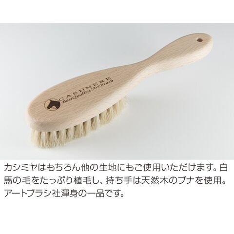 カシミアはもちろん他の生地にもご使用いただけます。白馬の毛をたっぷり植毛し、持ち手は天然木のブナを使用。アートブラシ社渾身の一品です。