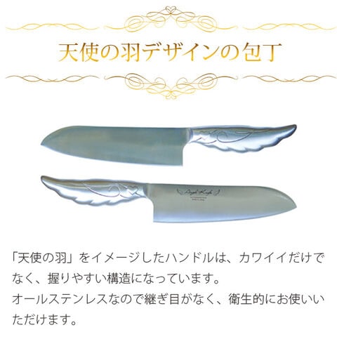日本製 オールステンレス かわいい 包丁 キッチン 料理 ナイフ 切れる トマト 野菜 持ち手 羽 天使 つなぎ目なし ステンレス 庖丁 ファンシー 雑貨 プレゼント 奥さん ママ 母の日 女性