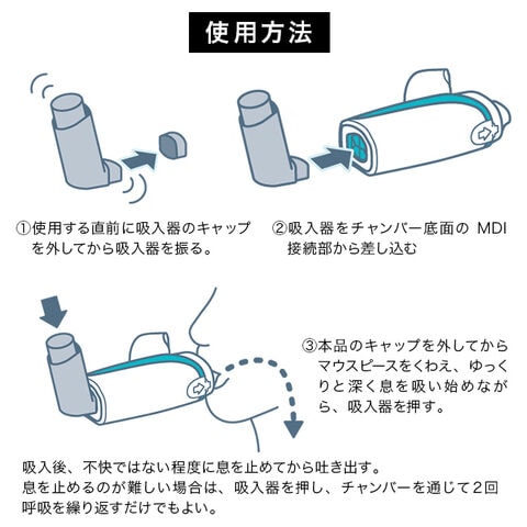 ・薬剤をチャンバー内に保持し、呼吸に合わせた吸入をサポート