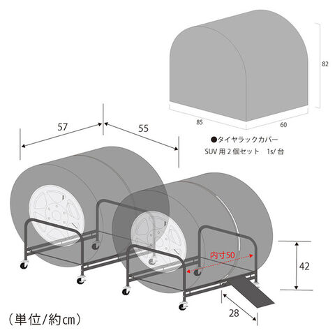 ・SUV対応の横置きタイヤ収納2台セットで車1台分を省スペース保管。