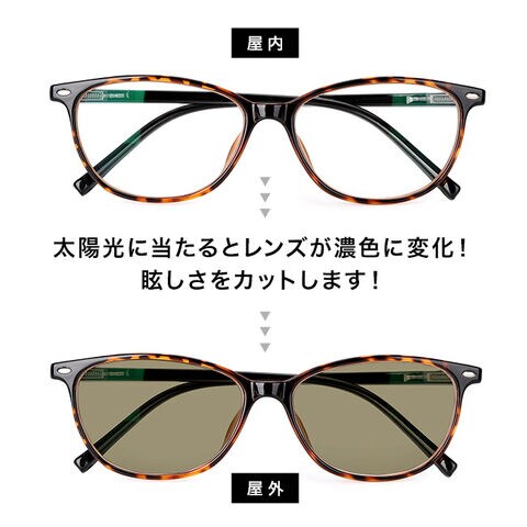 さらに、調光機能付き!太陽光に当たると、レンズの色が濃色に変化し、眩しさをカットします。UVカット99%仕様なので、紫外線から目を守ります。