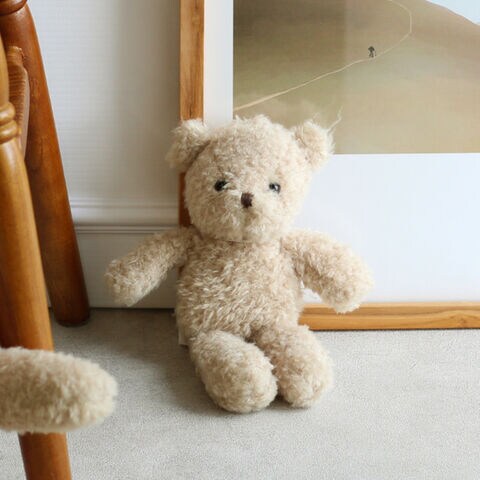 つぶらな瞳と優しい表情がチャームポイント。クラシカルなスタイルのくまのぬいぐるみです。