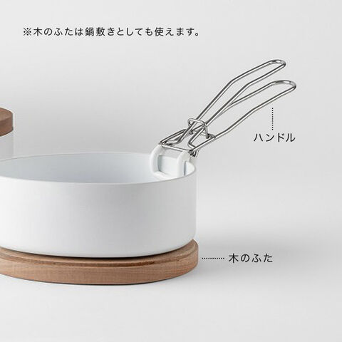 即納 knIndustrie ABCT キャセロール 24cm IH対応+ハンドル+木の蓋セット(片手鍋 浅型 鍋 IH ガス 対応 ガス対応 そのまま 食卓 調理器具 おしゃれ 白い鍋 白 ホワイト 鍋の取っ手 取り外し ハンドル 着脱ハンドル)