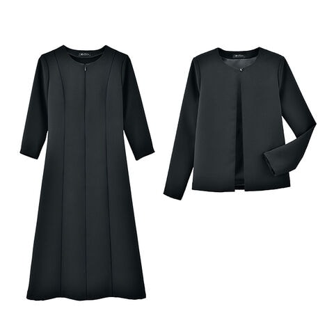 装飾の無いシンプルな長袖のジャケットとワンピースのセットです。
