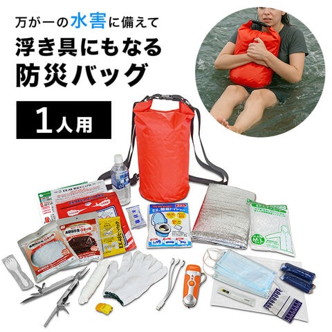 1-2W EX.浮き具になる防水バックパック+完璧防災用品 プラス(防災バッグ 1人用 非常用持ち出し袋 リュック 置き場所 自宅 寝室 災害備蓄 セット リュックサック 地震 洪水 災害 防災リュック 災害時)