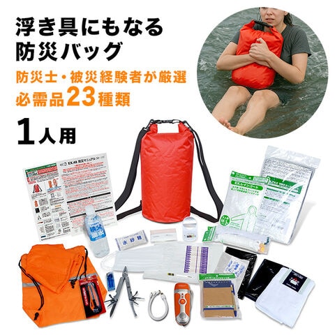 1-2W EX.ホーム・セーフ・ホーム 浮かぶ防水バックパック付安全帰宅セットDX[防災バッグ 1人用 非常用持ち出し袋 リュック 置き場所 自宅 寝室 災害備蓄 セット リュックサック 地震 洪水 災害)