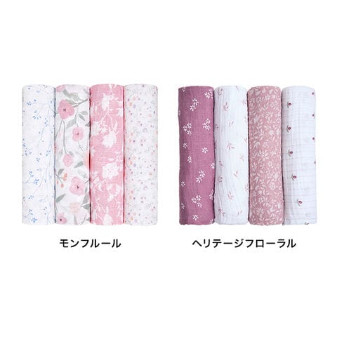 【モンフルール】aden+anais エイデンアンドアネイ スワドル 4枚(おくるみ ガーゼ 新生児 退院 かわいい 花柄 綿100% コットン)※1枚目の画像は代表イメージのため色・柄が異なる場合がございます。2枚目以降で色・柄をご確認下さい。