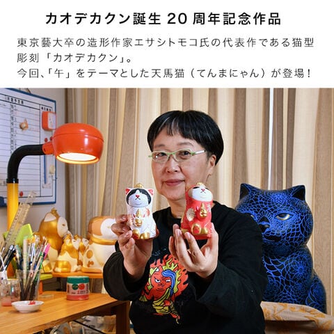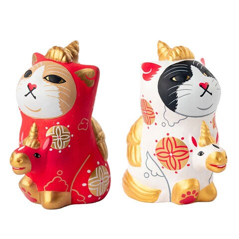 エサシトモコ みんなの天馬猫 紅白セット(縁起物 置物 干支 馬 午 玄関 リビング 午年 グッズ 午年の置き物 干支の置き物)