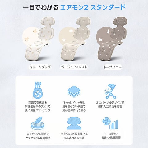 メーカー直送 【ベージュフォレスト】 【R】 エアモン2 スタンダード(ベビーカーシート 夏 ファン付き ベビー クールシート 扇風機 ファンシート) ※1枚目の画像は代表イメージのため色・柄が異なる場合がございます。2枚目以降で色・柄をご確認下さい。