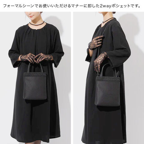 1-2W IWASA フォーマル 2way ポシェット(フォーマルバッグ バッグ レディース 黒 入学式 慶弔 両用 結婚式 葬式 葬儀)