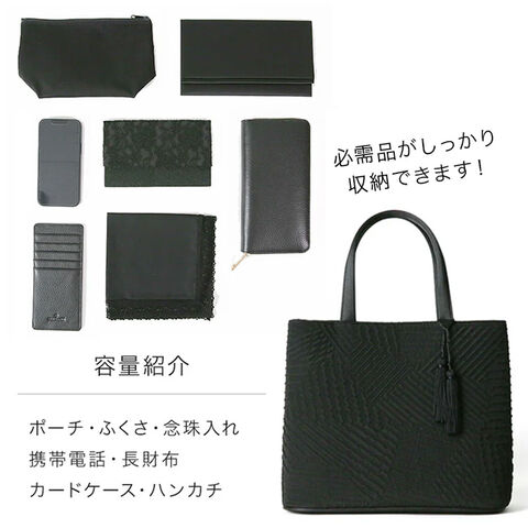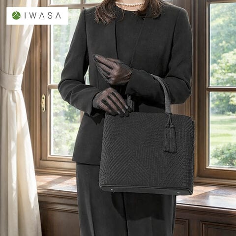 弔事を中心としたフォーマルな場に配慮したトートバッグです。落ち着いたブラックカラーで、装いを選ばず安心してお使いいただけます。