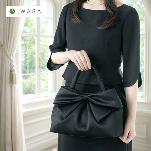 1-2W IWASA 両面リボン付き ソフト トートバッグ(フォーマル バッグ レディース 黒 入学式 慶弔 両用 結婚式 葬式 葬儀)