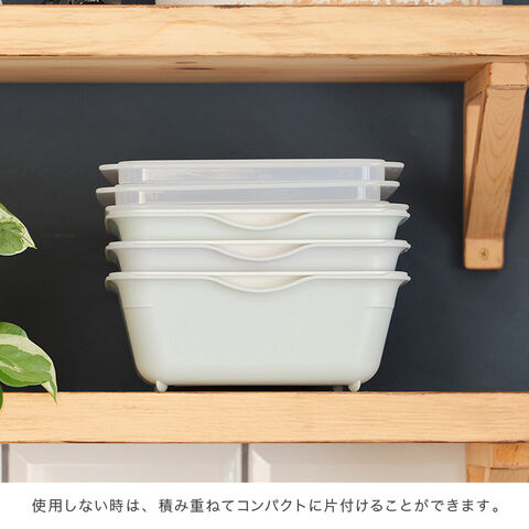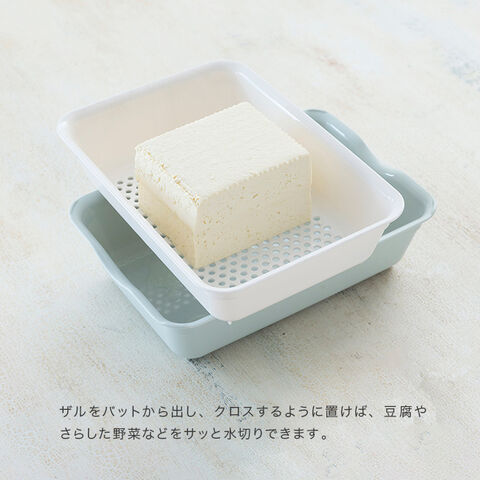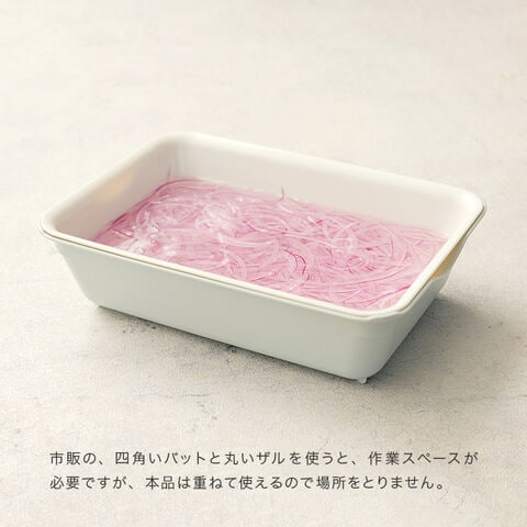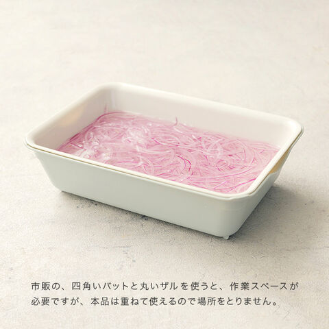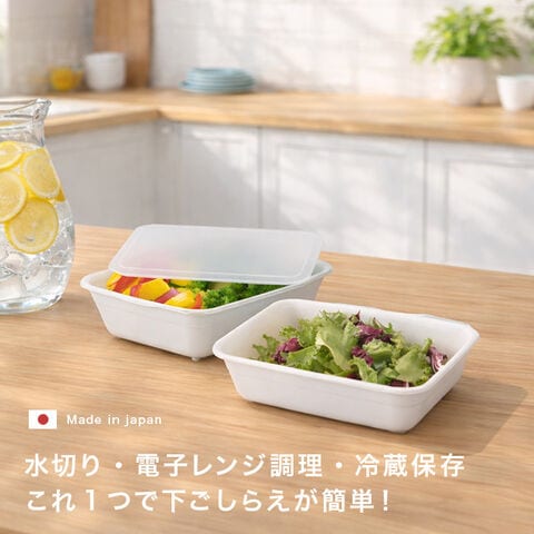 ・下ごしらえから電子レンジ調理、冷蔵保存まで対応。バットとザル一体型で洗い物を減らせます。