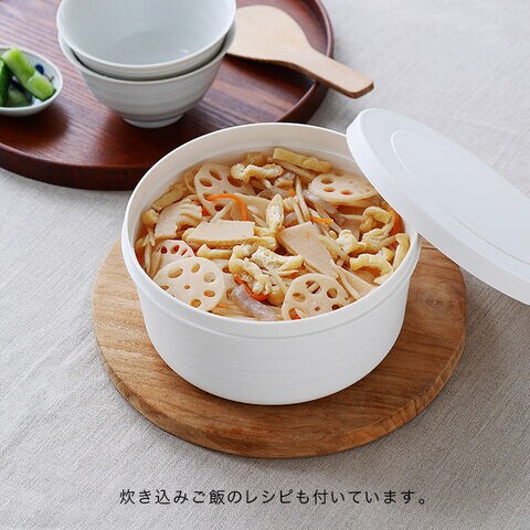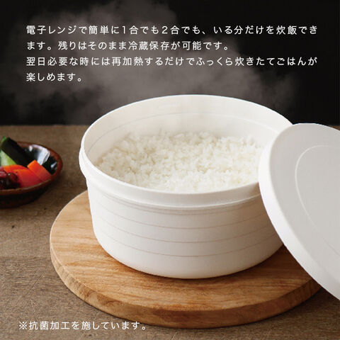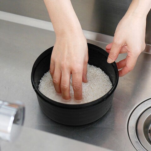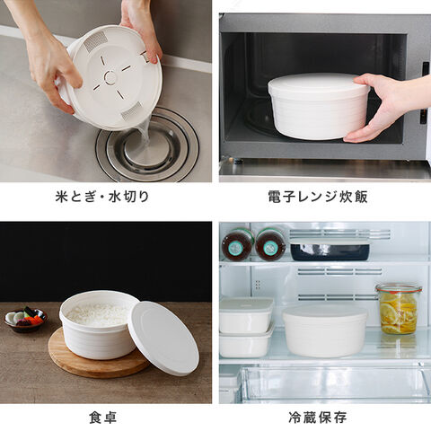 ・米とぎ、水切り、炊飯までを1台で行える電子レンジ用おひつ。