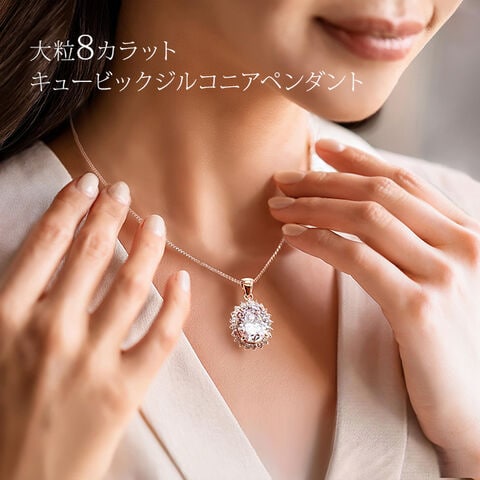 1-2W 大粒8カラット キュービックジルコニア ペンダント(ピンクゴールド ネックレス エレガント ミセス 華やか お呼ばれ 装い 結婚式 パーティー ドレス ディナーショー 50代 60代 レディース アクセサリー)