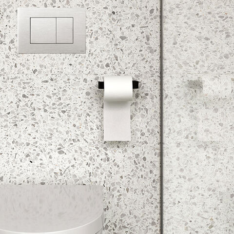 バスルームの空間に幾何学的な美しさを与えるトイレットロールホルダー。洗練されたインテリアを演出します。