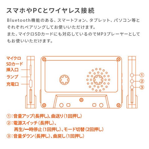 カセットテープをそのまま小さくしたような、レトロで遊び心あふれるBluetoothスピーカー。