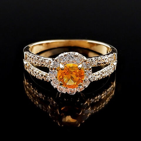 まるでティアラのように全面に敷き詰められたキュービックジルコニアと大粒シトリンが華やかな指輪。