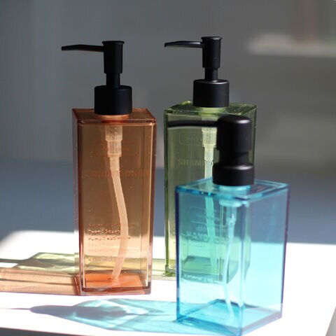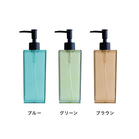 透明度が高く、艶のある樹脂を使用した、詰め替え用ボトル。