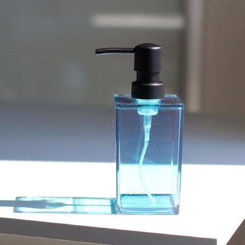 透明度が高く、艶のある樹脂を使用した、詰め替え用ボトル。