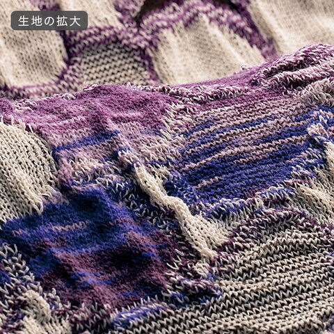 かすり糸ならではの表情豊かな色合いと、編み地の変化で生まれる凹凸が、