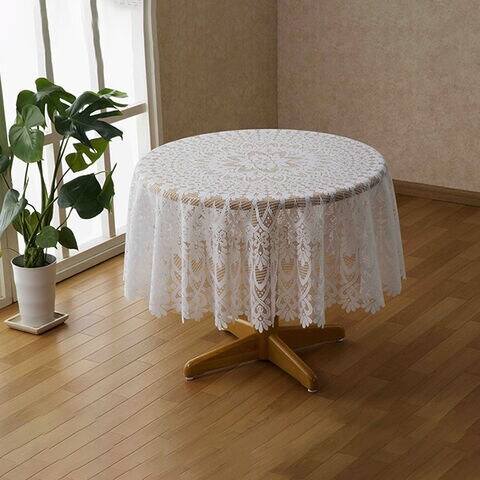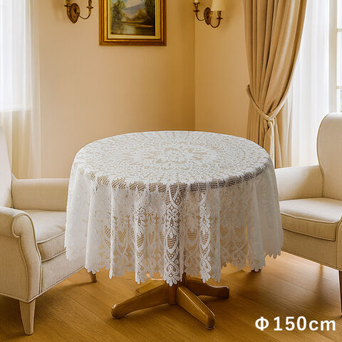 1-2W 撥水加工 レース テーブルクロス 円形 直径150cm(テーブルクロス 撥水 白 レース おしゃれ 円形 150 布)