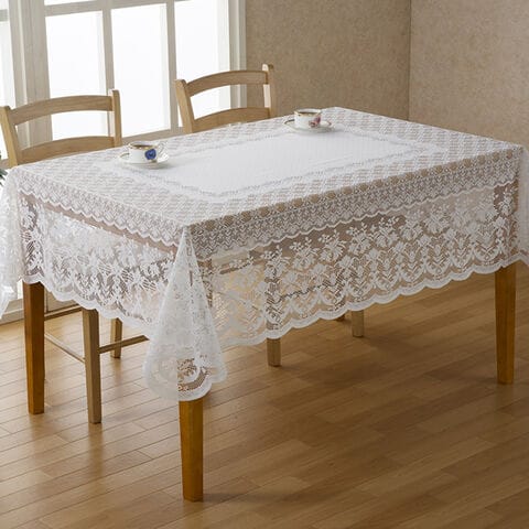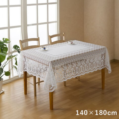 1-2W 撥水加工 レース テーブルクロス 長方形 140×180cm(テーブルクロス 撥水 白 レース おしゃれ 長方形 布)
