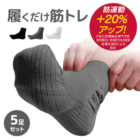 【ブラック:24-25cm】履くだけ筋トレ 《同色5足セット》(靴下 ソックス メンズ レディース 兼用 歩行 ウォーキング 運動 筋トレ トレーニング)※1枚目の画像は代表イメージのため色・柄が異なる場合がございます。2枚目以降で色・柄をご確認下さい。