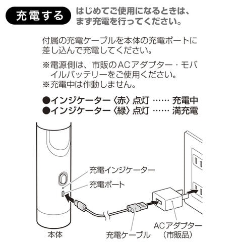 【注意】※充電時は市販のACアダプター・モバイルバッテリーをご使用ください。