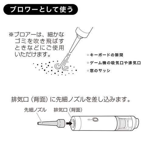 ●エアーブロアー機能でキーボードや隙間のゴミを吹き飛ばす。