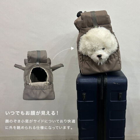 サイドに小窓が付いており、ペットがお顔を出して外を眺められる仕様です。