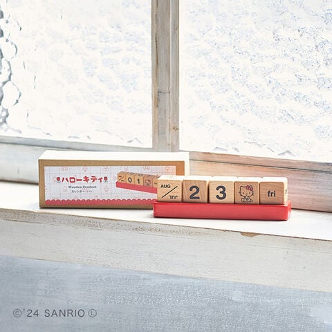 即納 ハローキティ カレンダー レッド(万年カレンダー 木製 ウッド キューブ ブロック キティちゃん かわいい 卓上 万年暦 キティちゃんグッズ 大人 万年 カレンダー 卓上カレンダー キャラクター)